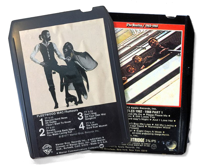 Significantly larger than the compact cassette at 133 mm × 100 mm × 20 mm, the eight-track cartridge uses ¼-inch magnetic tape running at 3.75 inches per second (9.5 cm/s) in a continuous loop. Its eight tracks were arranged as four stereo programs, selected mechanically.