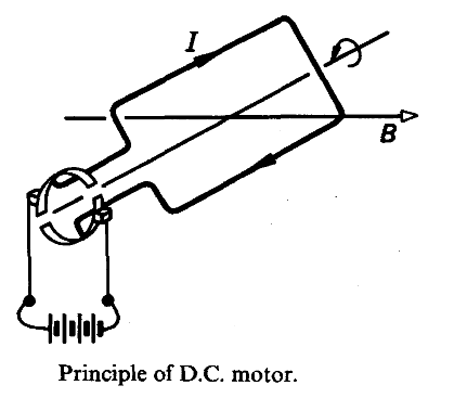 Any current-carrying conductor placed within an external magnetic field experiences a force, known as Lorentz force. In the simple motor illustrated, this Lorentz force forms a couple with the axis of the motor armature and thus creates a torque which turns the armature half a turn. Now, a motor which only turns half a turn isn't much good. But, if the direction of the electric current is reversed, the motor will make another half turn. So, what is required is an arrangement by which the current may be reversed every half turn so that the armature will continue to spin. If the armature includes two contact areas split via small gap (called a commutator) and the current is supplied to the coils via soft brushes which make contact with the commutator, the position of the commutator relative to the fixed armature and brushes will determine in which direction the current flows in the coil and a practical motor is created.